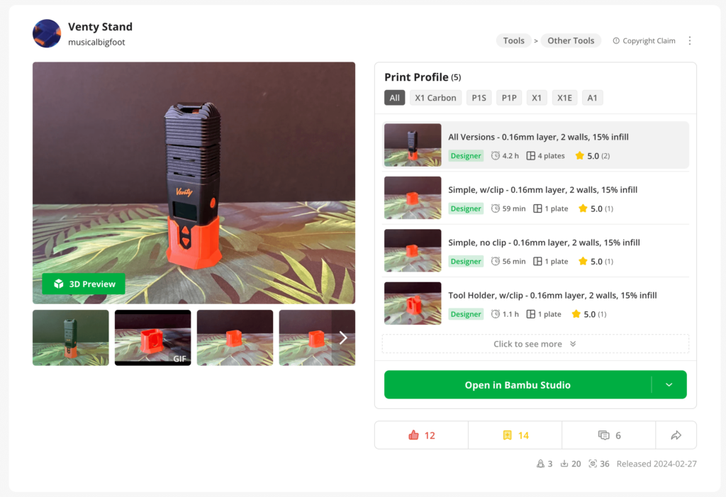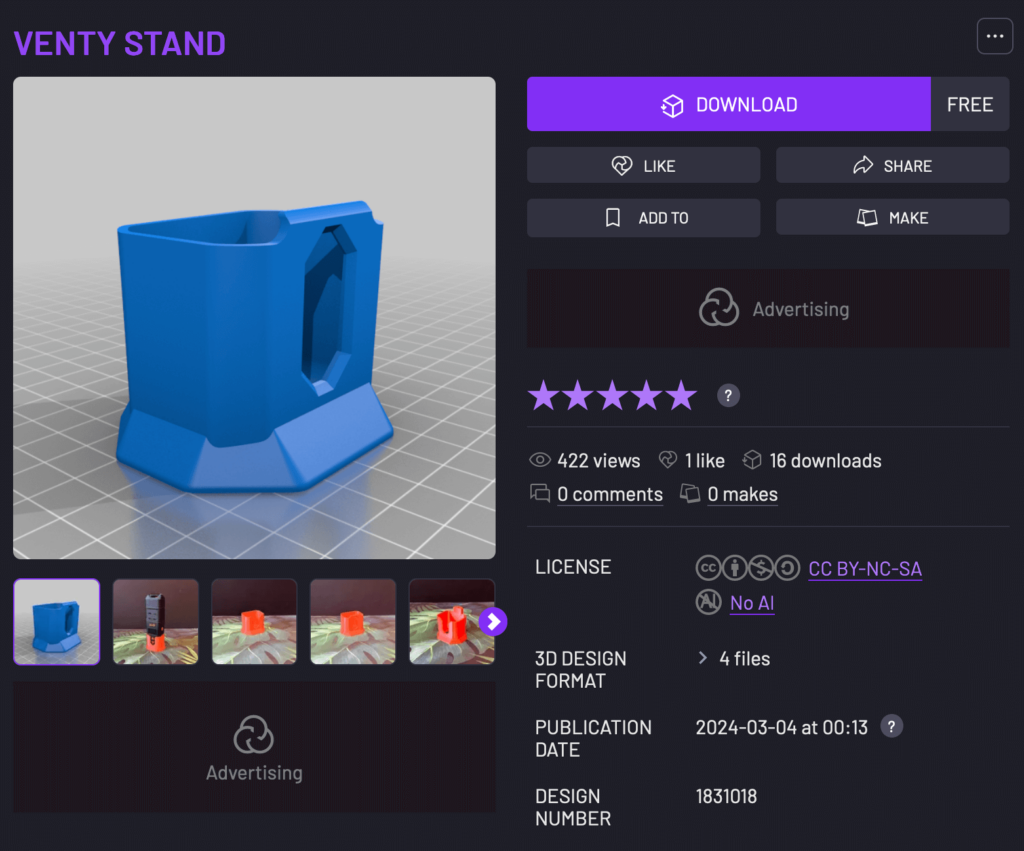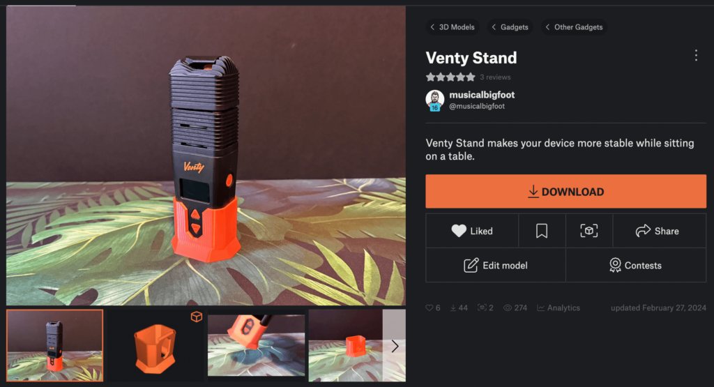 Welcome to the Venty Stand download page! As a fellow Venty enthusiast, I designed this stand not just for myself, but with the entire community in mind. My goal has always been to share this creation with other 3D printing enthusiasts who want to enhance their Venty experience.
